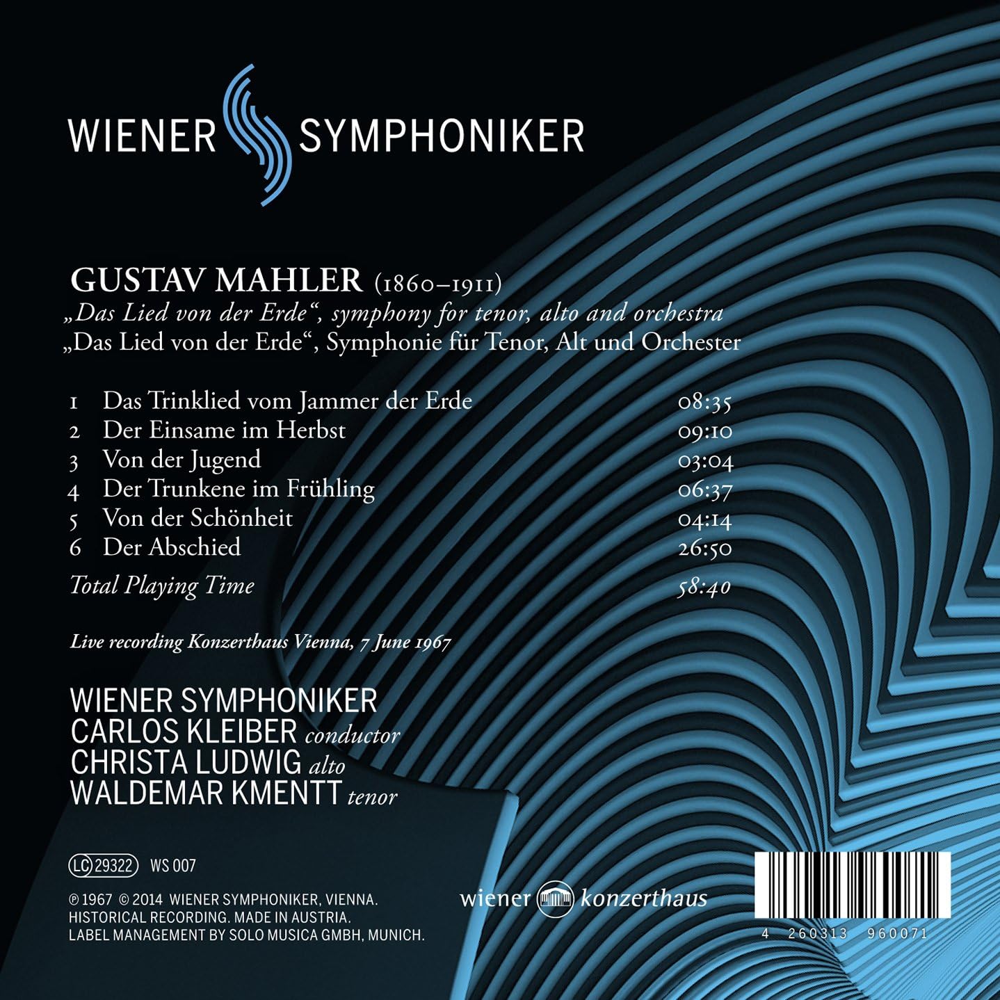 驚愕の事実ですわね。カルロス史における重大事件ですよ。だって、カルロスのデビュー盤は1973年にグラモフォンから出た《魔弾の射手》であると、いままでみんな信じてたわけで、これが覆ることになります。なんとカルロスのデビュー盤は、それより6年前の《大地の歌》だったとは!