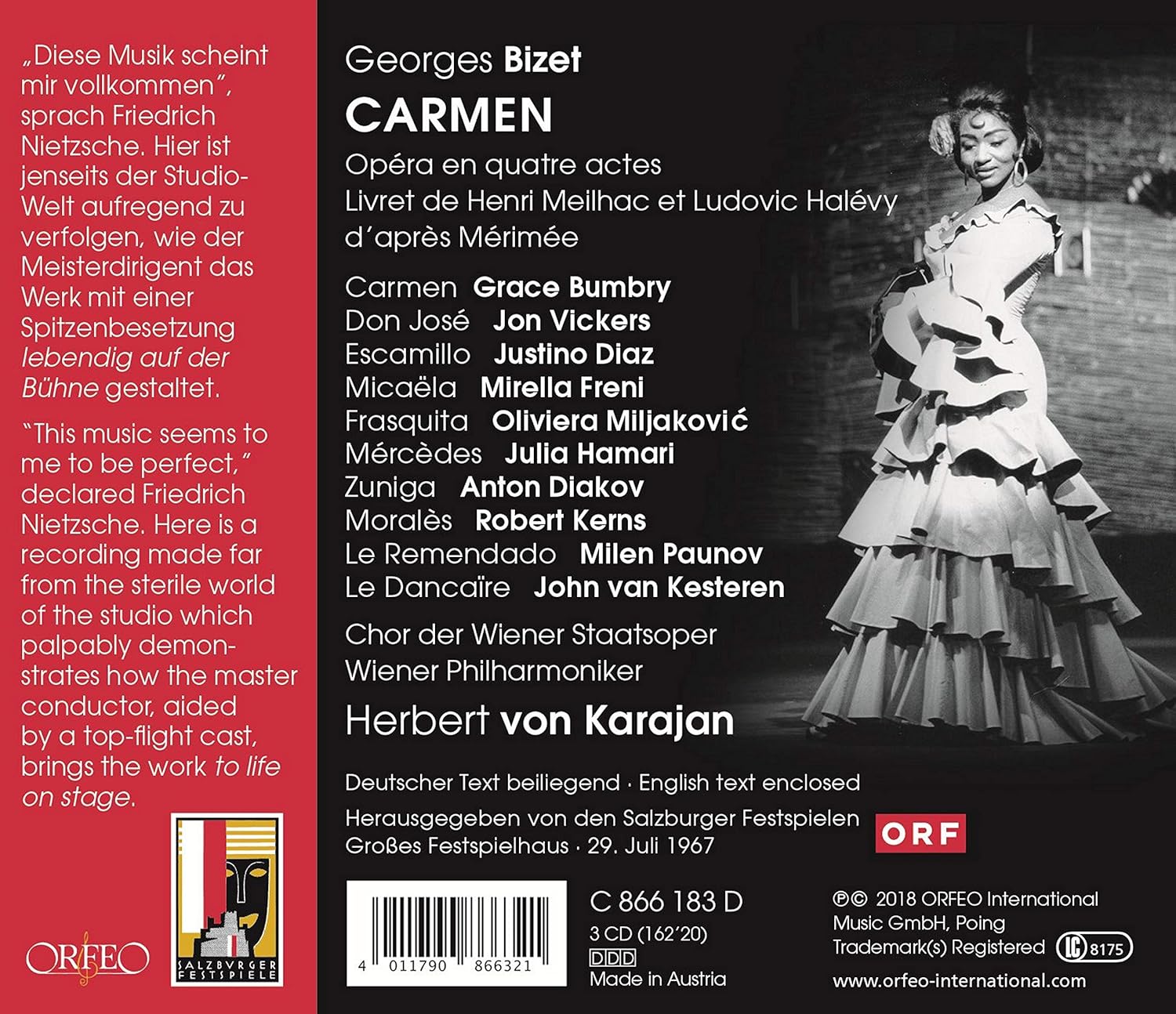 バンブリーのカルメンと言えばカラヤンの映画が有名。最近ザルツブルクのライヴもCD化されました。このライヴ、収録は1967年、初出は2018年。ということは、録音後50年公開されなかったため、日本の著作権法では2018年1月1日にパブリックドメインになっているんですね~。オルフェオのライヴ音源にはたまにこういうケースがあります。